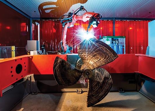 En este caso, otra organización, también holandesa, RAMLAB (Rotterdam Additive Manufacturing Laboratory), con el apoyo de AUTODESK (software) y PROMARIN (hélices navales), bajo control del Bureau Veritas, ha fabricado una hélice de 1.300 mm de diámetro y un peso de 180 kg en el clásico material de estas piezas, bronce al níquel-aluminio-manganeso. El proceso Wire Arc Additive Manufacturing (WAAM) ha mostrado alta fiabilidad en el material obtenido. Después del correspondiente mecanizado en una máquina CNC, un pulido manual por amolado superficial la ha dejado lista para su montaje. Los ensayos han sido completados por pruebas reales de comportamiento en marcha, hasta conseguir la certificación de la Clasificadora.
